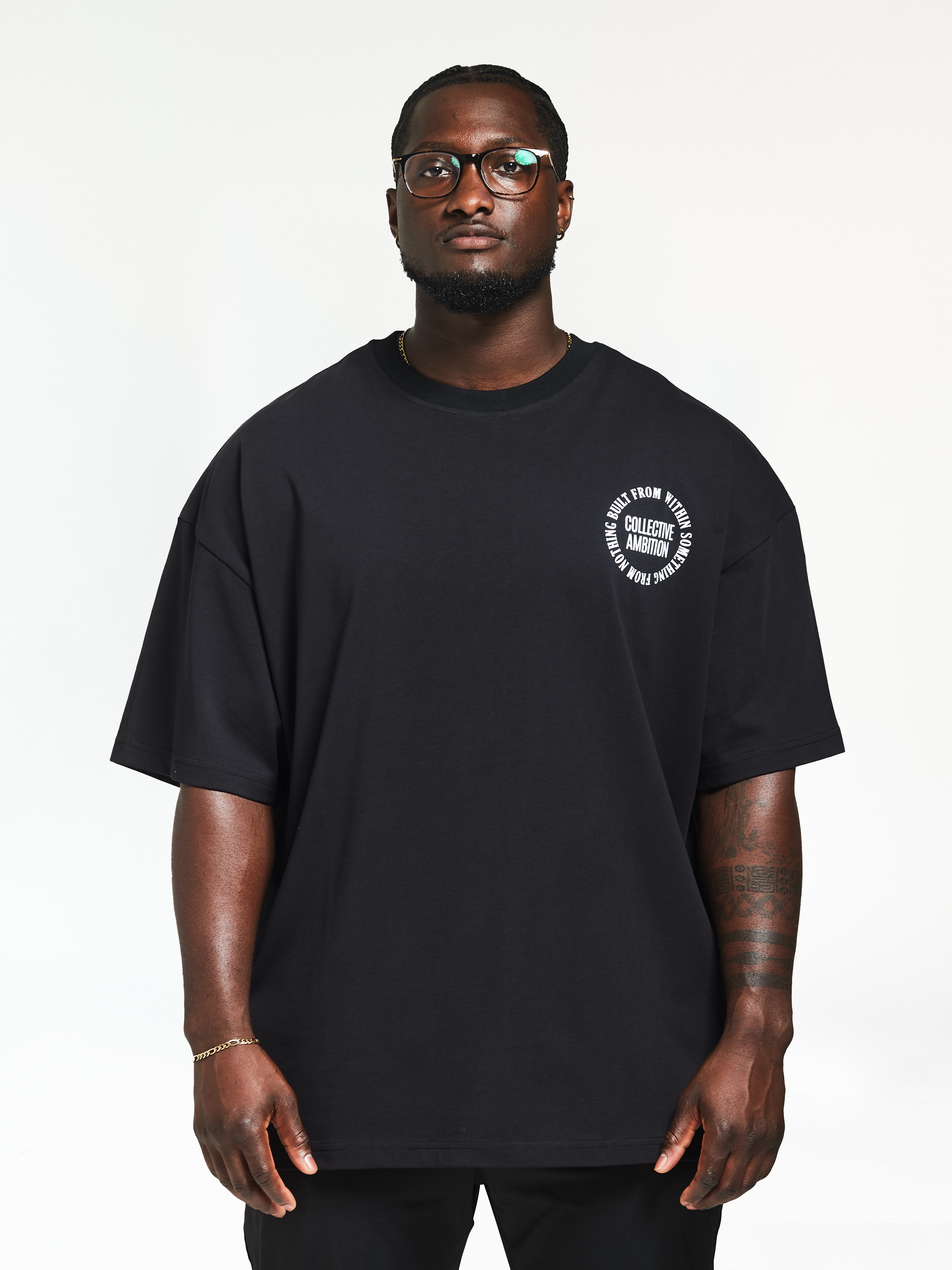 Introducing the Collective Ambition Imperial T-Shirt in All Black, an oversized t-shirt crafted from quality medium weight cotton. This t-shirt has a ribbed crewneck collar and statement branding to the front and back.